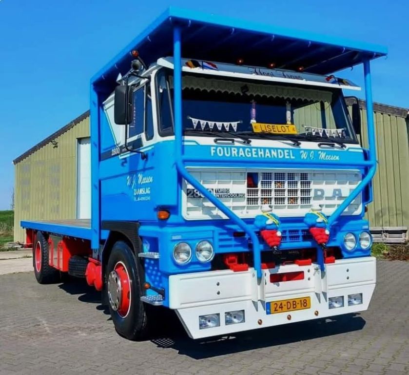 Opmerking: In het bruin is hij geboren en stond hij op de Daf stand de RAI. Van Den Oever heeft hem toen gekocht later hebben ze hem verhuurd aan Duitsland voor een muziek programma. Die hebben hem blauw gespoten kwam toen iedere week op de Duitse TV. Toen dat contract afgelopen was heeft hij nog ff bij van de Oever gelopen tot Toon Jansen hem heeft gekocht en heeft. Is gerenoveerd door SDN in Nuenener is nog een nieuwe motor in gehangen. SDN is nu TTC van Gog. Nu dus van Jansen