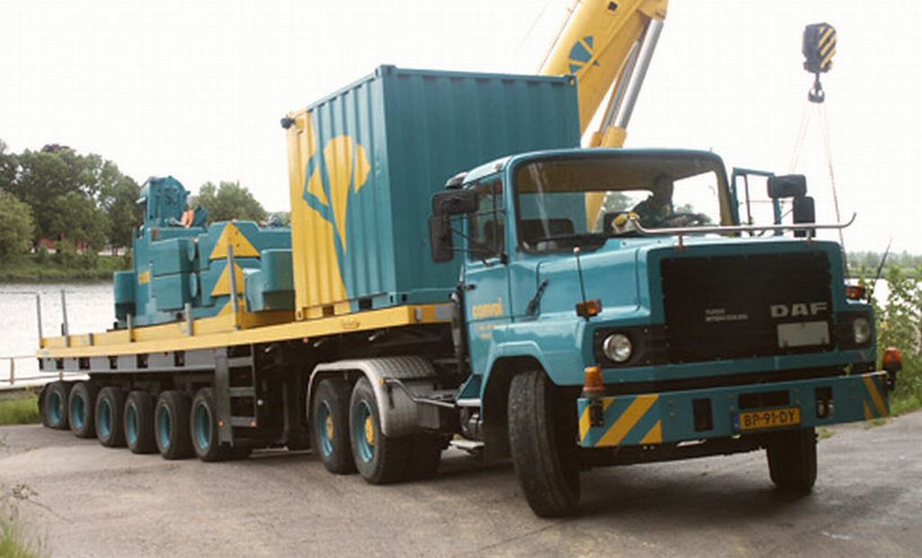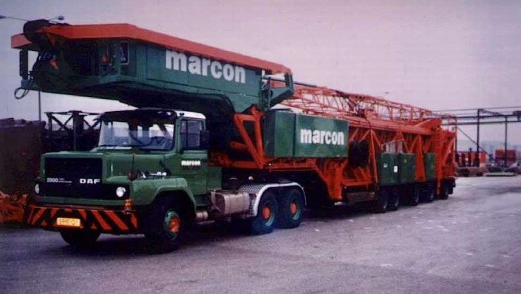 Opmerking: Oudje van Marcon Kraanverhuur uit Born. Daarna van Convoi uitzonderlijk transport uit Utrecht, nog even in de kleuren van Mammoet geweest