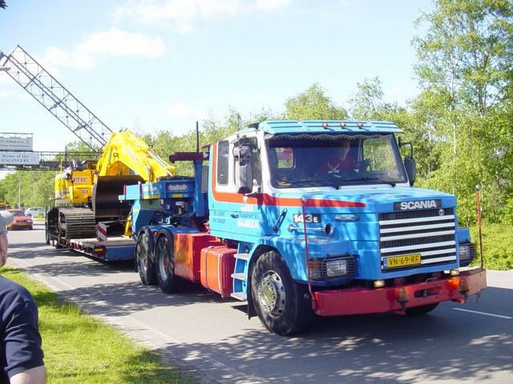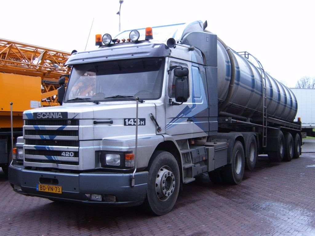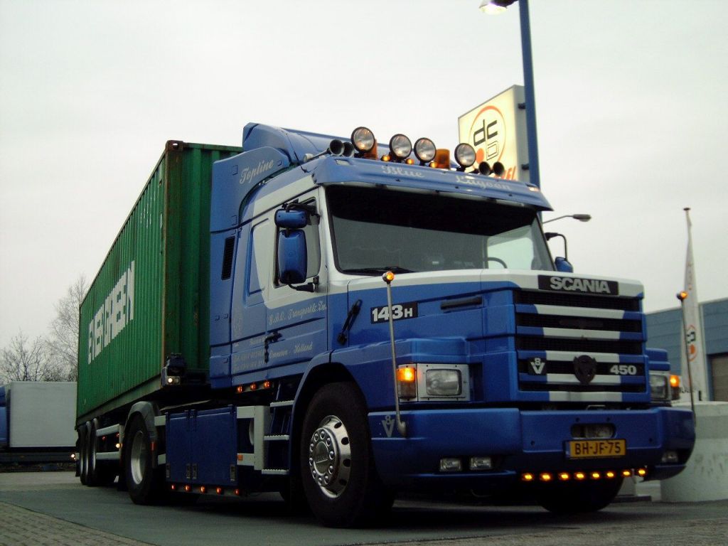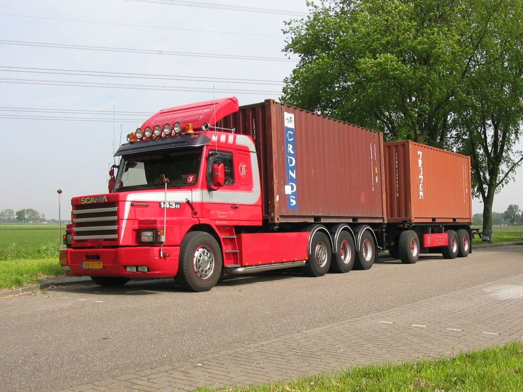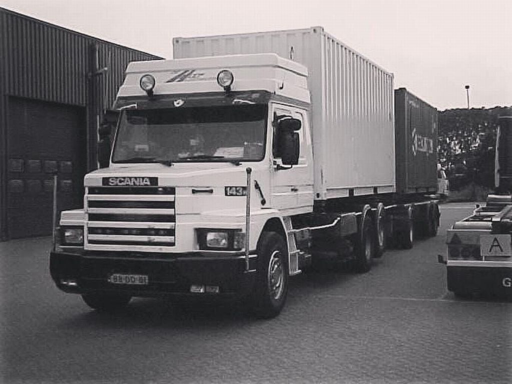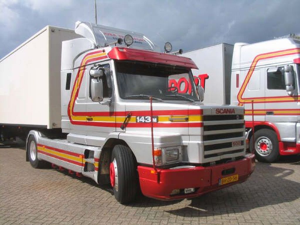 Opmerking: Alex Miedema schreef: In de herfst van 1999 zette ik bij Benny Nauta op het terrein hun Scania T143 met kenteken BD-NH-68 op de foto. Deze truck is in 1992 gebouwd en kwam in 1996 naar Nederland. De truck er naast is op papier overigens geen Scania, maar een Beers SCANIA T3M 4X2 AS 65115. Op het Truckstar Festival van 2015 kwam ik het neusje weer tegen, nu ziet hij er ‘iets’ anders uit, in de kleuren van Duijghuijzen Handel en Transport V.O.F. uit Druten. Dit is dus geen compleet verhaal, voor hij in de BNT kleuren kwam was er minstens één buitenlandse eigenaar, voor foto’s uit die periode houd ik me aanbevolen.