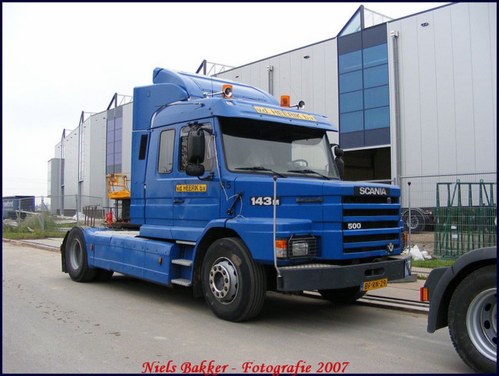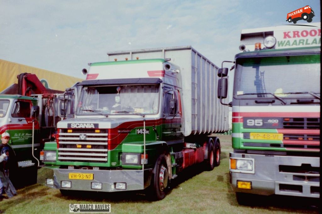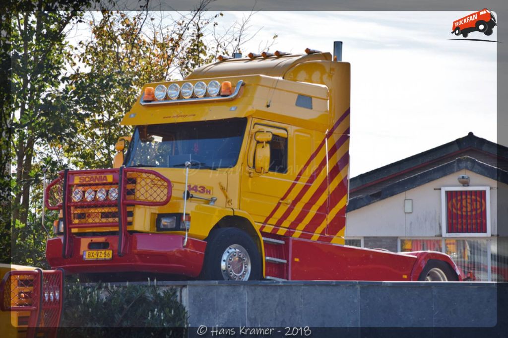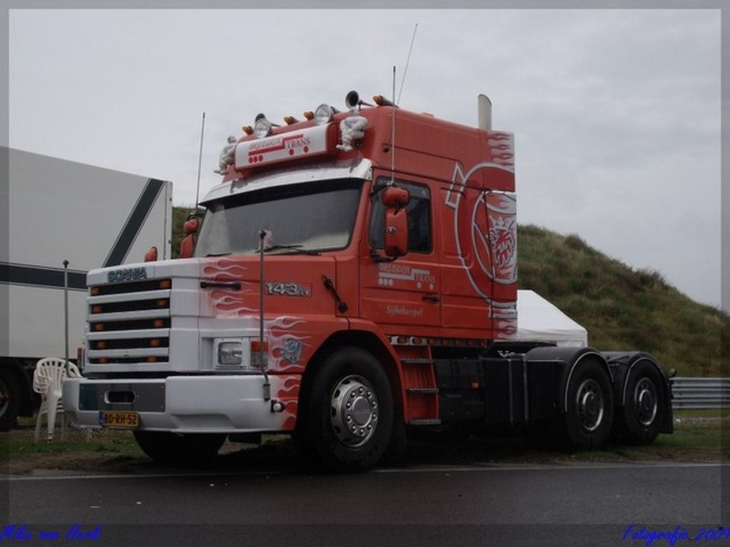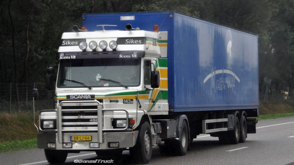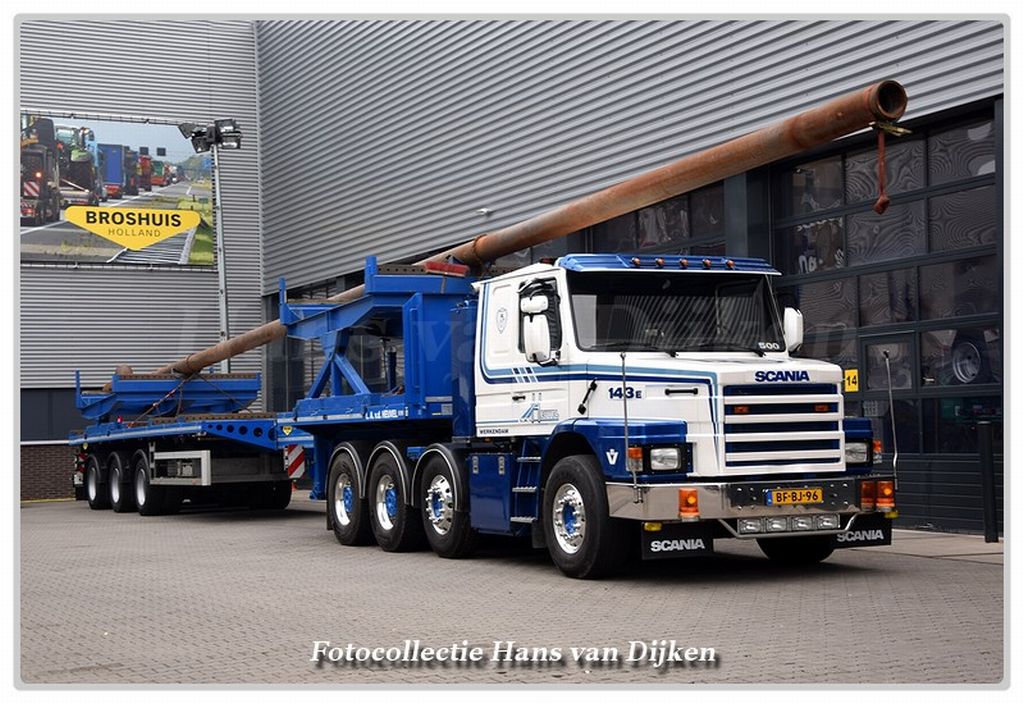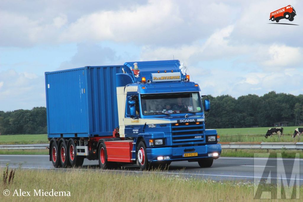 Opmerking: Alex Miedema schreef: In de herfst van 1999 zette ik bij Benny Nauta op het terrein hun Scania T143 met kenteken BD-NH-68 op de foto. Deze truck is in 1992 gebouwd en kwam in 1996 naar Nederland. De truck er naast is op papier overigens geen Scania, maar een Beers SCANIA T3M 4X2 AS 65115. Op het Truckstar Festival van 2015 kwam ik het neusje weer tegen, nu ziet hij er ‘iets’ anders uit, in de kleuren van Duijghuijzen Handel en Transport V.O.F. uit Druten. Dit is dus geen compleet verhaal, voor hij in de BNT kleuren kwam was er minstens één buitenlandse eigenaar, voor foto’s uit die periode houd ik me aanbevolen.