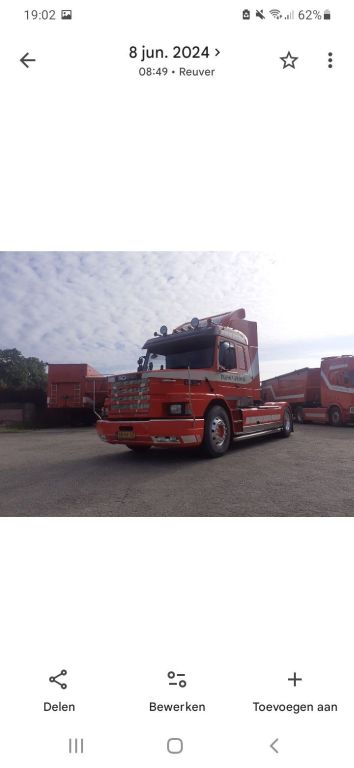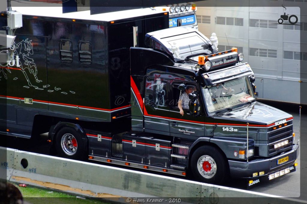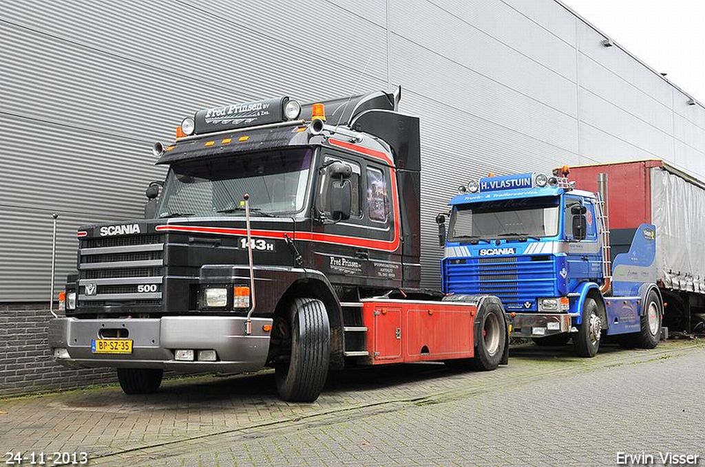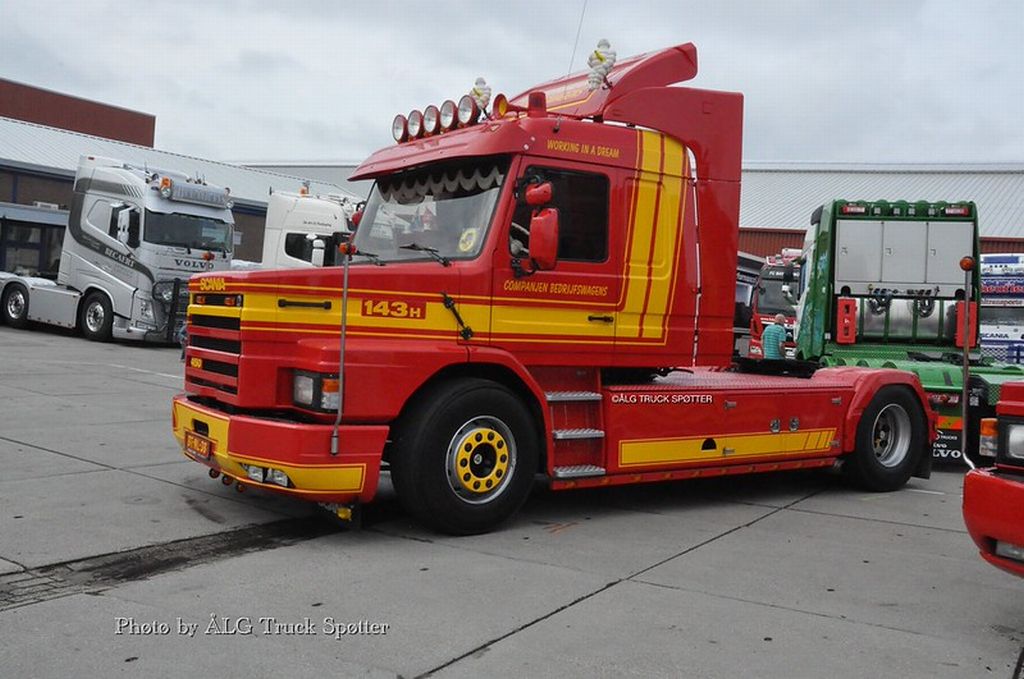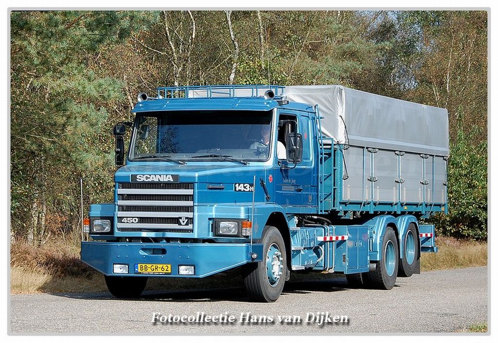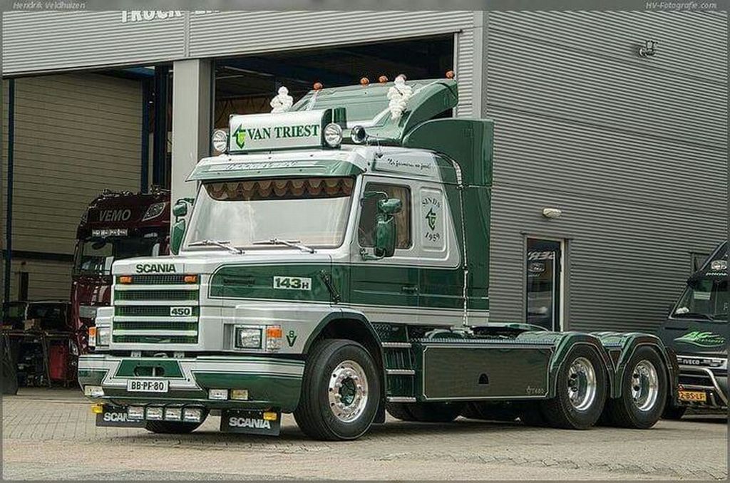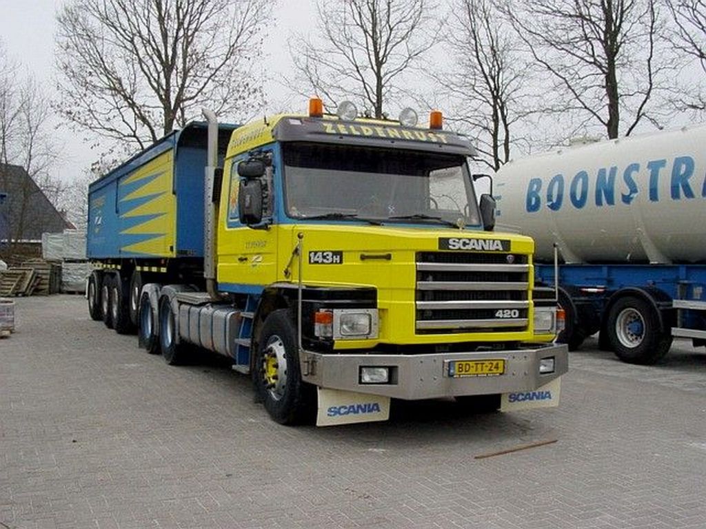 Opmerking: Alex Miedema schreef: In de herfst van 1999 zette ik bij Benny Nauta op het terrein hun Scania T143 met kenteken BD-NH-68 op de foto. Deze truck is in 1992 gebouwd en kwam in 1996 naar Nederland. De truck er naast is op papier overigens geen Scania, maar een Beers SCANIA T3M 4X2 AS 65115. Op het Truckstar Festival van 2015 kwam ik het neusje weer tegen, nu ziet hij er ‘iets’ anders uit, in de kleuren van Duijghuijzen Handel en Transport V.O.F. uit Druten. Dit is dus geen compleet verhaal, voor hij in de BNT kleuren kwam was er minstens één buitenlandse eigenaar, voor foto’s uit die periode houd ik me aanbevolen.