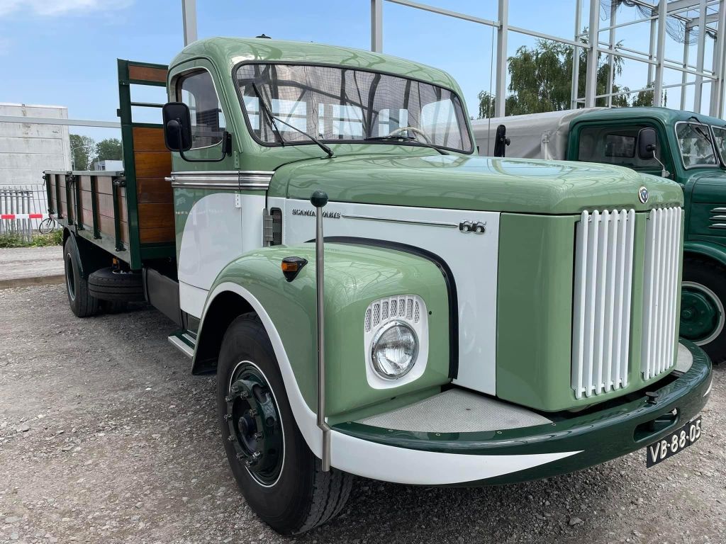 Opmerking: Opgave van datum Toelating klopt niet. Dit model is tot 1969 gebouwd.. Deze wagen is in bezit geweest van Van Heugten Transport, vervolgens van E. Moesbergen. Een speciaaltje, de cabine is af fabriek 10 cm. langer dan standaard. Daarvan zijn er 10 in Zweden gebleven en 10 voor de export weg gegaan.